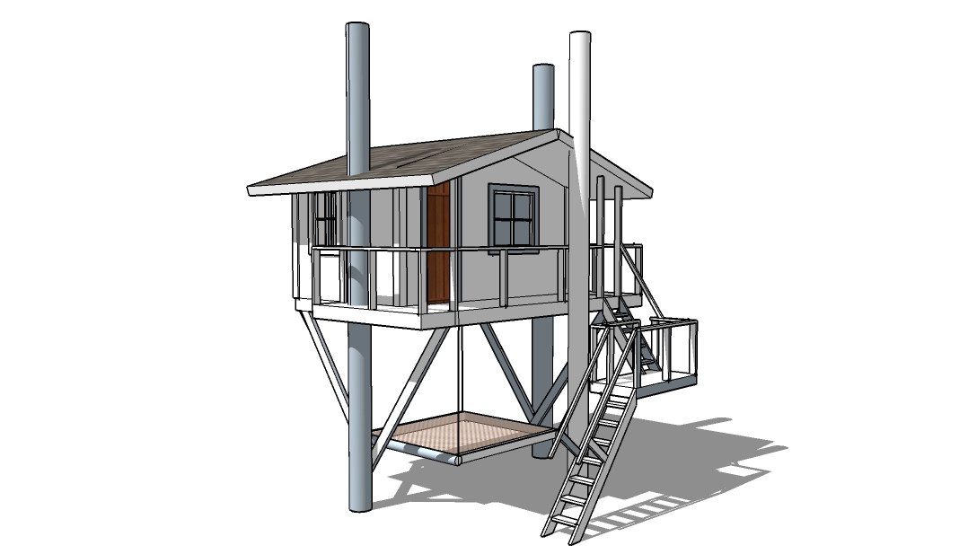 Конечно, были попытки построить простейшие шалаши, стенки из прутьев, настилы. Однако, в тот момент моей жизни, было еще слишком мало опыта в строительстве и понимания законов природы. Но вот я вырос, получил столярное и лесохозяйственное образование, приобрел навыки строительства, построил несколько домов, бань, и прочих сооружений. Родилась дочь, и мои детские фантазии приобрели форму. Я воплотил ее в реальность. Строя этот домик, я делал его для своей дочки-поэтому все конструктивные решения и узлы имели своей первоосновой любовь, из которой вытекали безопасность и красота, желание порадовать и заинтересовать ее физической активностью, наблюдательностью, пониманием и любовью к природе.